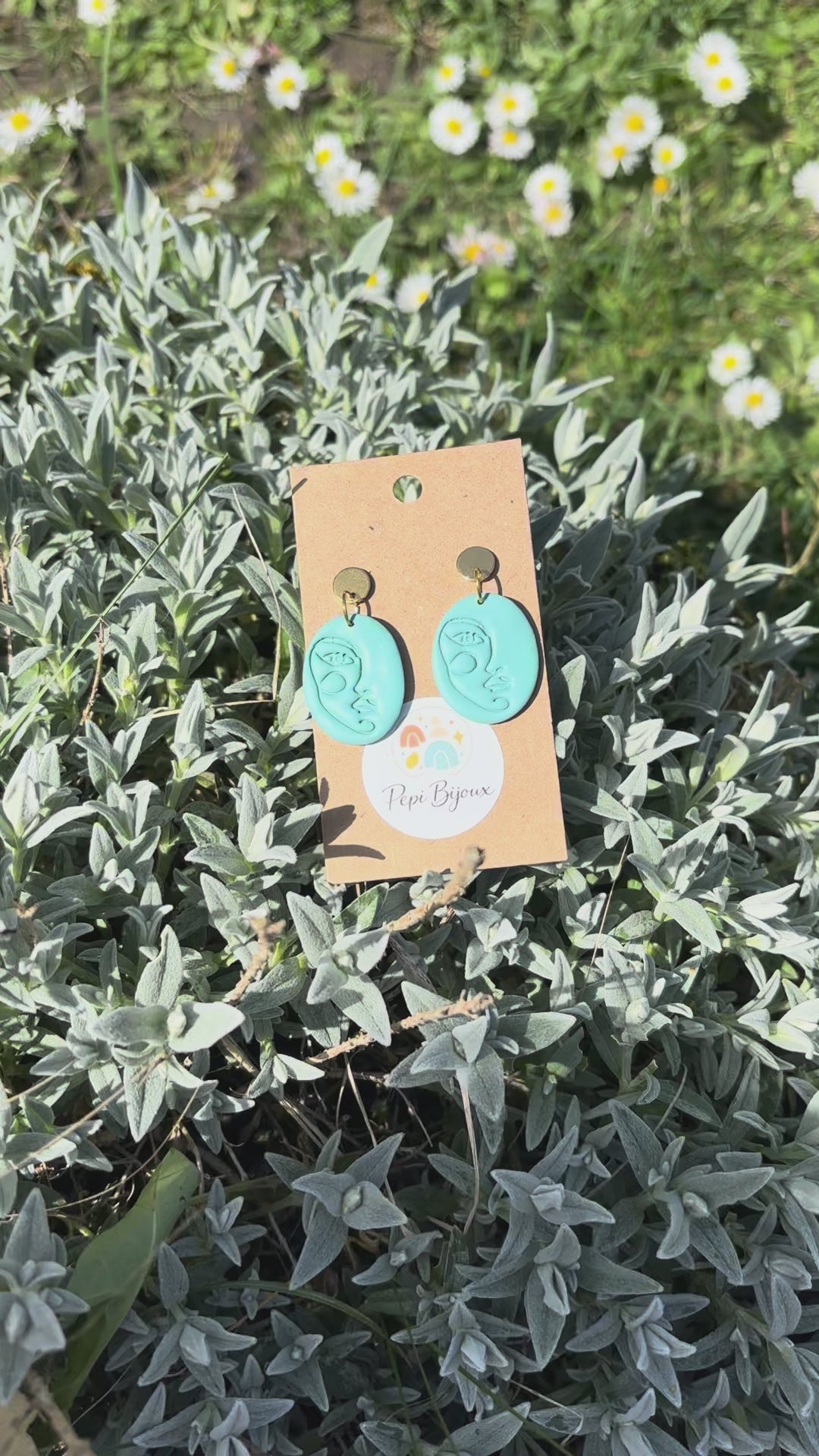 Un diseño moderno con una cara de mujer rosa, celeste o dorada de arcilla polimérica y un cierre dorado de acero inoxidable que no suele producir alergias.